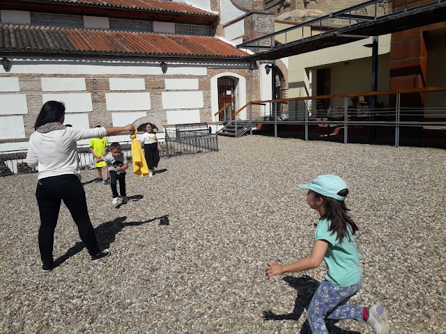Primeramente, han recibido información en un aula donde se les ha explicado qué son este tipo de juegos y desde cuándo se utilizan. Les han mostrado cuadros de otros tiempos y alguna fotografía donde se aprecia que son actividades lúdicas que se vienen realizando desde hace muchísimo tiempo. Nuestros alumnos demostraron el conocimiento que tenían del tema ya que el curso pasado en Educ&arte se trabajó Goya, autor que cuenta con una gran variedad de cuadros sobre los juegos de la época.